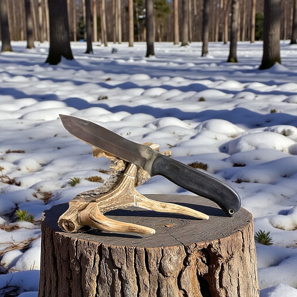 The blade length is 7 1/2" with an overall length of 13". Made with D2 steel. The handle material is black linen micarta. Sheath included. $225.00 + 10.00 shipping